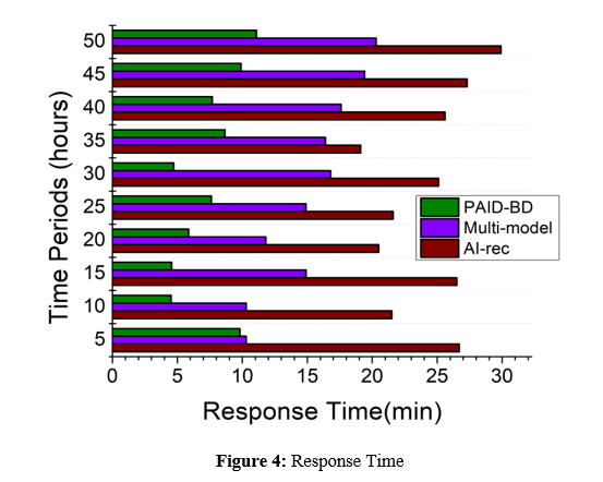 In Figure 4, the computation of response time starts with identifying an infectious incident, which may involve the diagnosis of unique indicators, testing verification of a new infectious agent, or a rise in reported cases that exceed the expected amounts. When a contagious incident has been identified, the correct data is often communicated to the agencies in charge of public health or those involved in viral surveillance and response. When calculating response time, the time between the initial detection and receiving notice of agencies is considered. Following the completion of the illness event using the PAID-BD evaluation framework, the authorities in charge of public health will devise response plans and tactics to prevent the disease from spreading further and to safeguard public health. In the computation of response time, the amount of time it took to make these decisions and develop response plans is comprised.