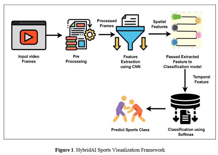 During the period of big data analytics, the development of data visualization technology has provided a solid platform for the creation of increasingly sophisticated fitness programs that are powered by artificial intelligence [4]. In order to make further progress in this area, a novel approach that has been proposed in this study is known as the HybridAI Sports Visualization Framework (HybridAISVF). By extracting both temporal and spatial information from the film, the HybridAISVF has the ability to classify sports videos through the utilization of machine learning techniques [5]. Enhanced analysis and presentation of sports data is achieved through the utilization of this architecture, which incorporates convolutional neural networks and temporal pooling layers.
