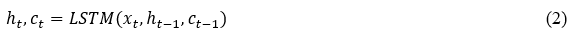 The variable π₯π‘,π represents the ππ‘β feature at time step π‘, while π represents the complete count of features. The feature vectors encompass a substantial amount of information retrieved during the data collection and preprocessing stages. It includes many aspects, including building attributes, occupancy patterns, and environmental conditions. The LSTM layers are of significant importance in the architecture of the model, as they are intentionally organized to sufficiently represent the long-term dependencies that are inherent in sequential data. Equation (2) updates the hidden state βπ‘ and cell state ππ‘, of the LSTM at time step π‘.